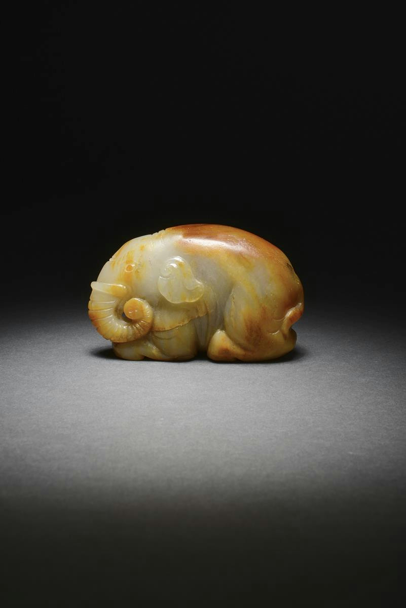 A Chinese russet-celadon pebble jade carving of an elephant probably late Qing dynasty