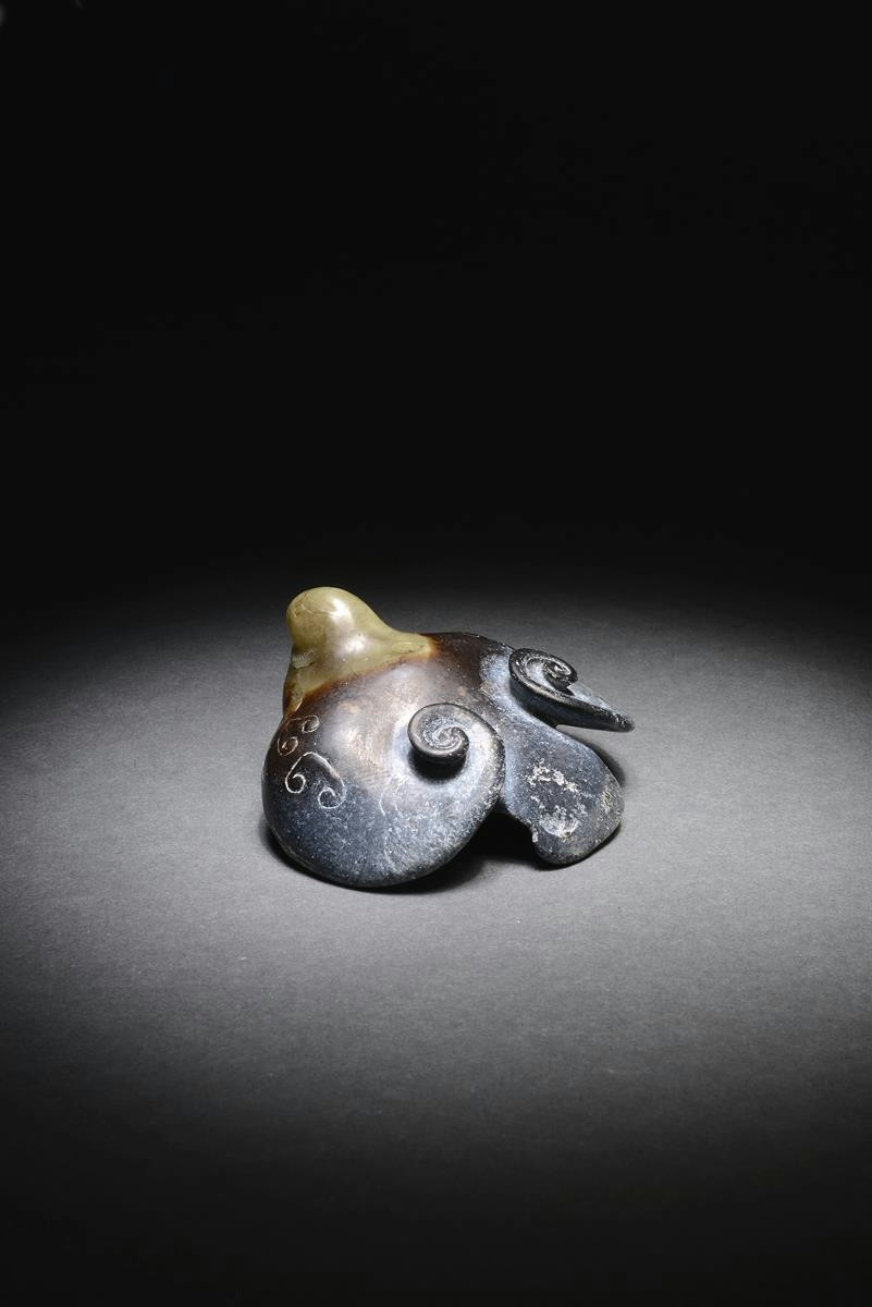 A Chinese brown jade archaistic carving of a bird Han dynasty or later