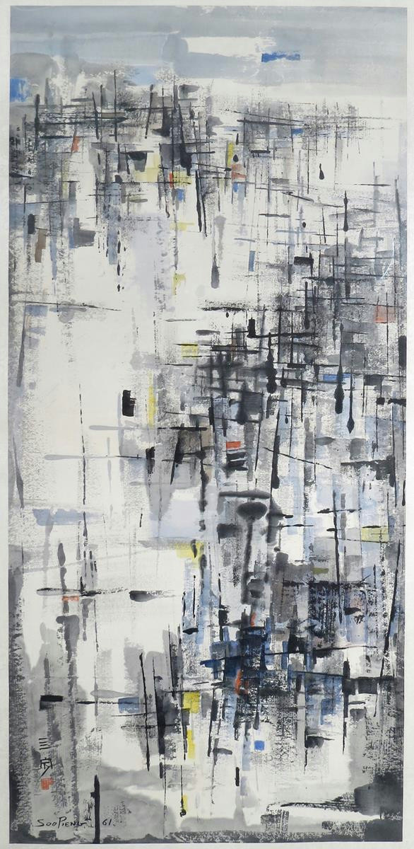 A scroll painting by Cheong Soo Pieng signed and dated 1961