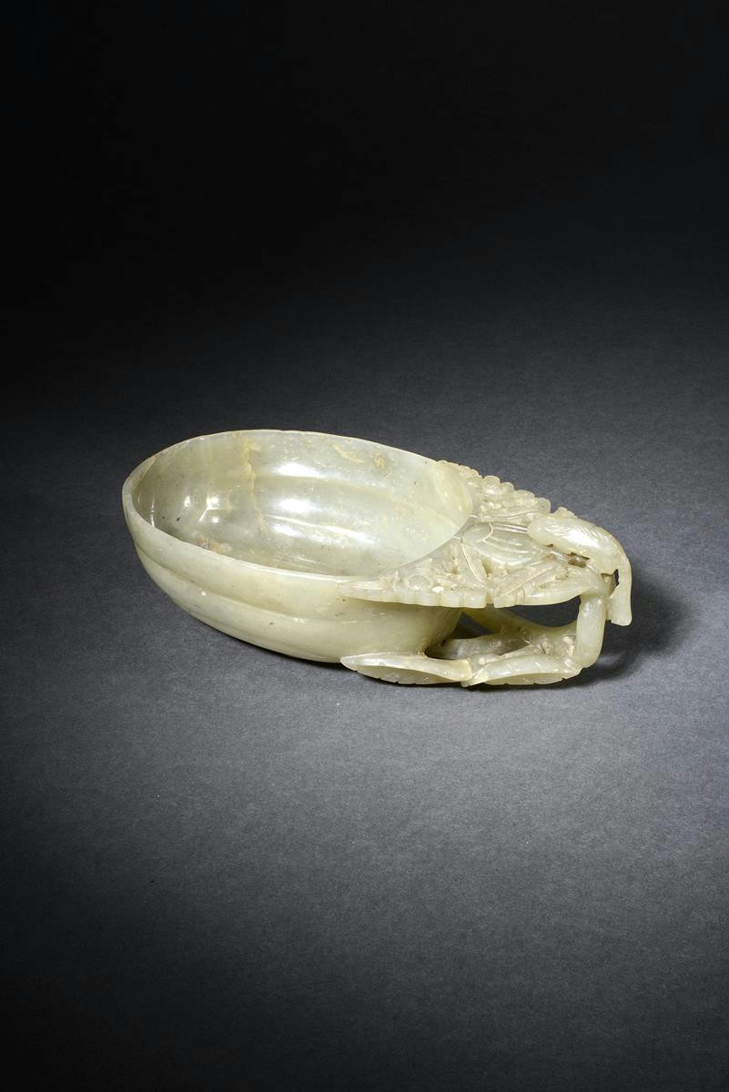 A Chinese celadon jade melon-shaped libation cup early Ming dynasty