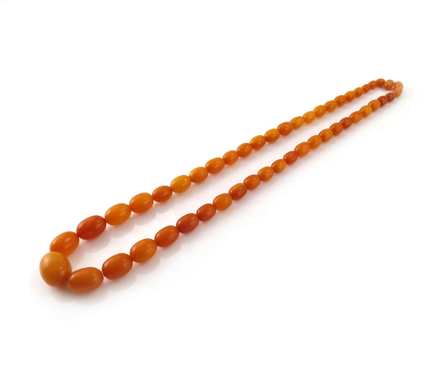 A Chinese amber necklace 19th/20th century, with graduated oval beads, 40cm.