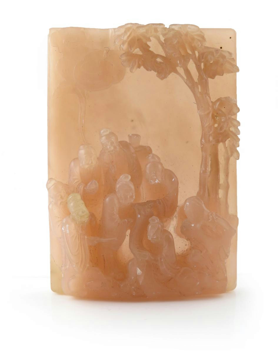 A Chinese pink soapstone plaque 19th century