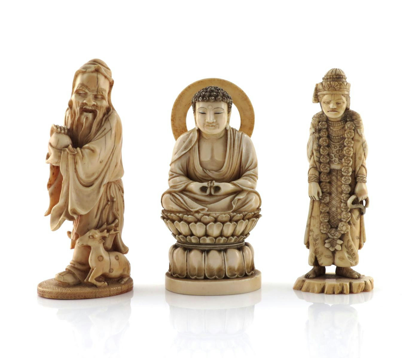 λ Three ivory figures 19th century