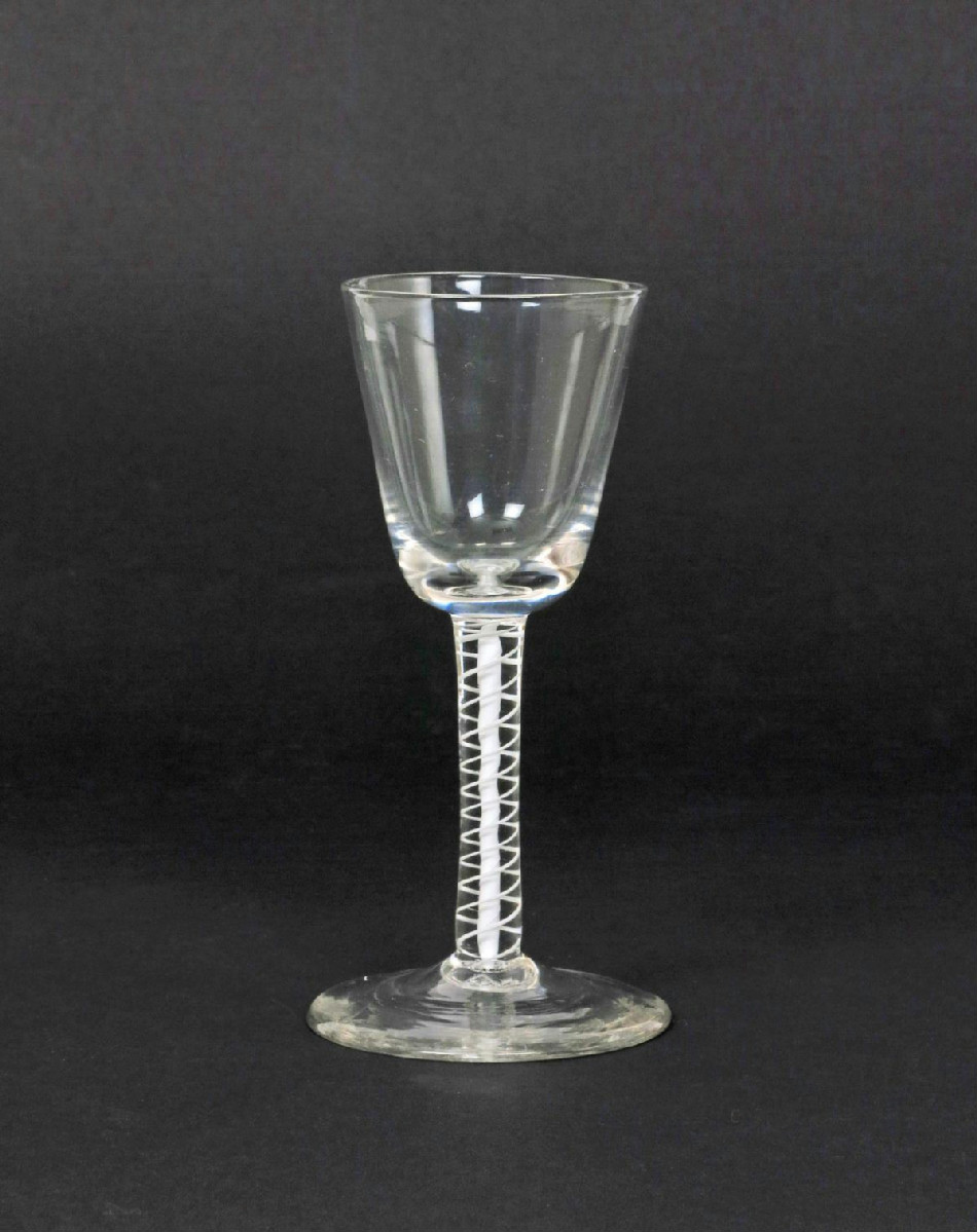 A wine glass c.1760, with generous flared bowl raised on a double series opaque twist stem, 15cm.
