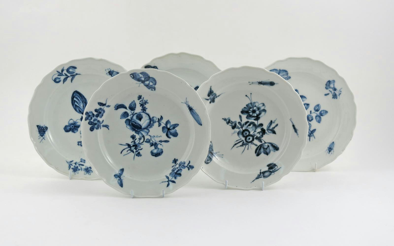 Five Meissen blue and white plates c.1765-75