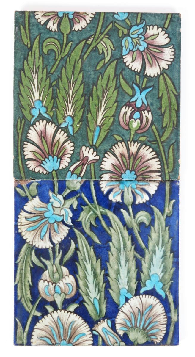 Two William De Morgan large Persian Flowers tiles