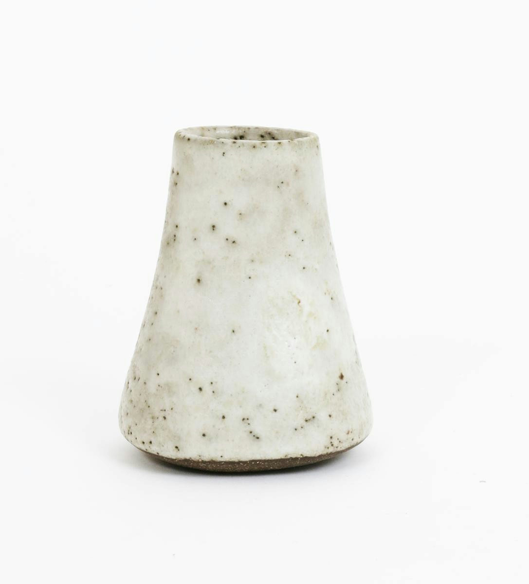 a stoneware vase, waisted cylindrical form, covered in a pitted white glaze impressed seal mark, 11.5cm. high