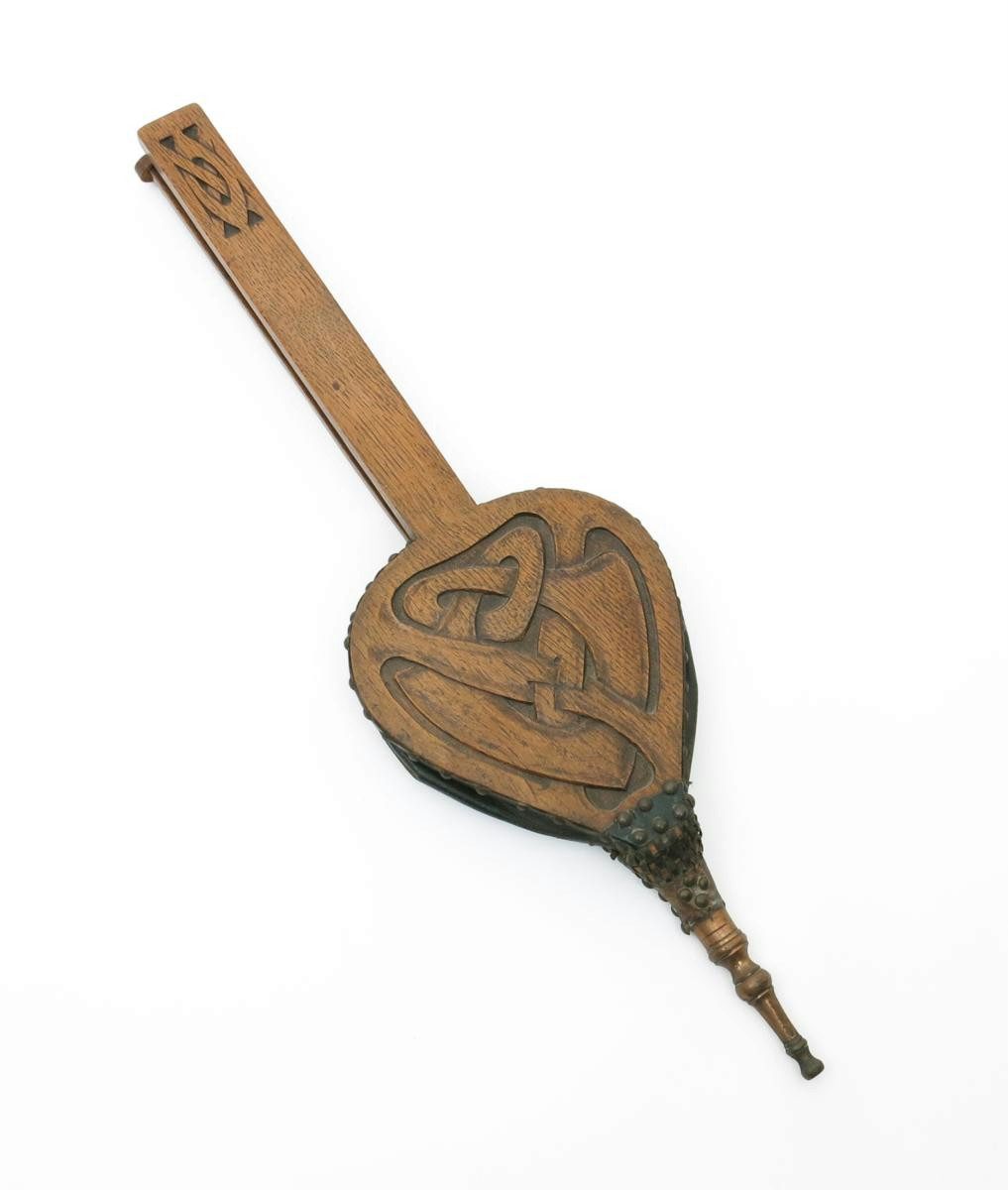 A pair of Liberty & Co Otley oak fire bellows designed by Archibald Knox
