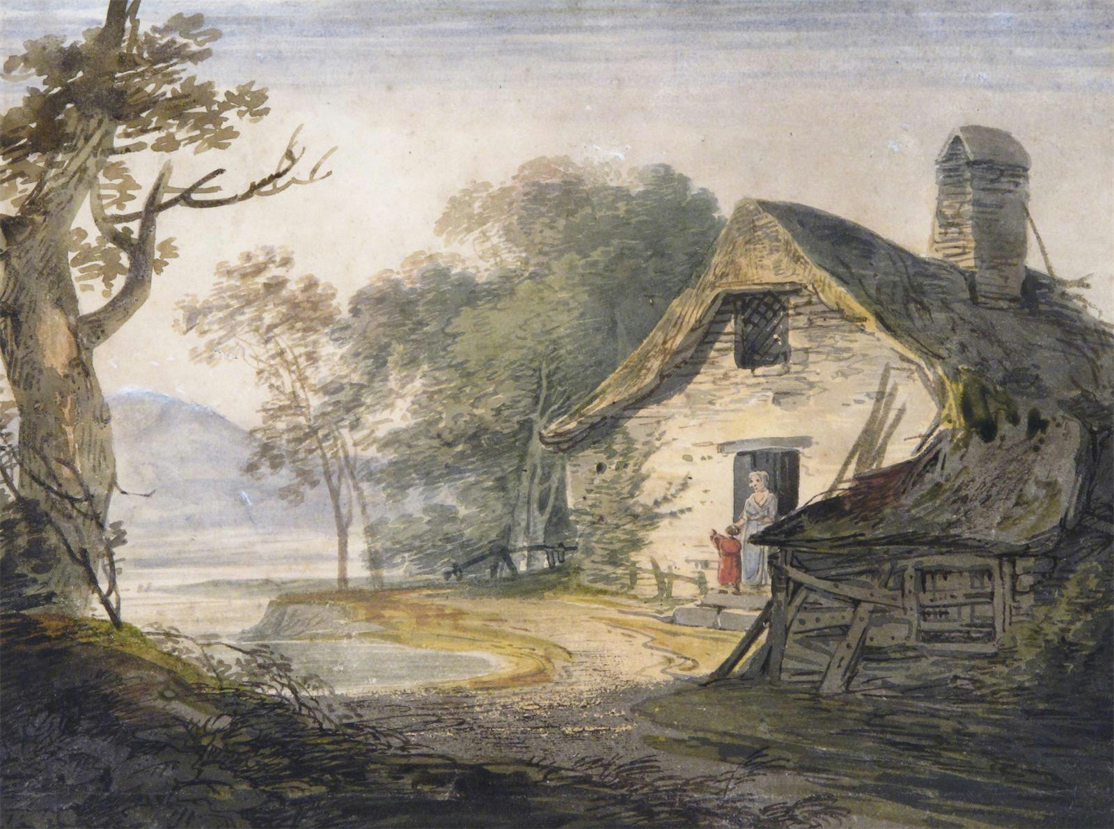 William Payne (c.1760-c.1830) Mother and child by a cottage door Watercolour 22 x 29cm; 8½ x 11½in
