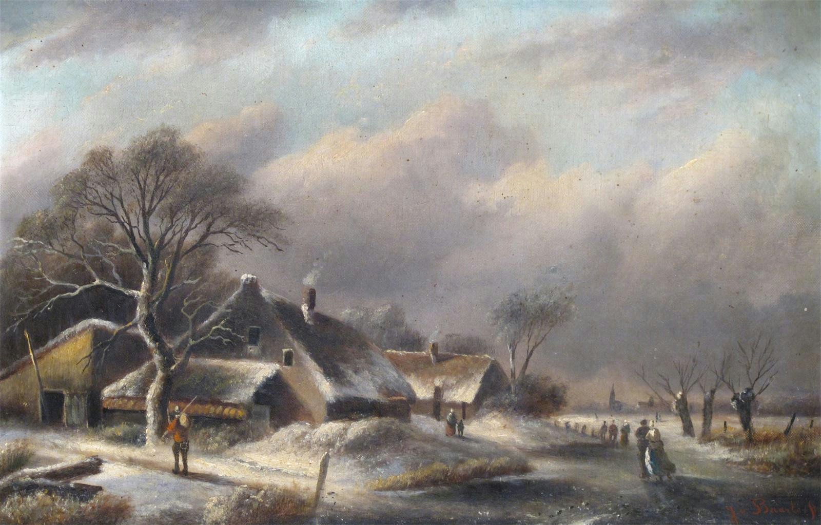 J. Van Baarlé (19th Century) Winter scene Signed Oil on canvas 30 x 46cm; 12 x 18in