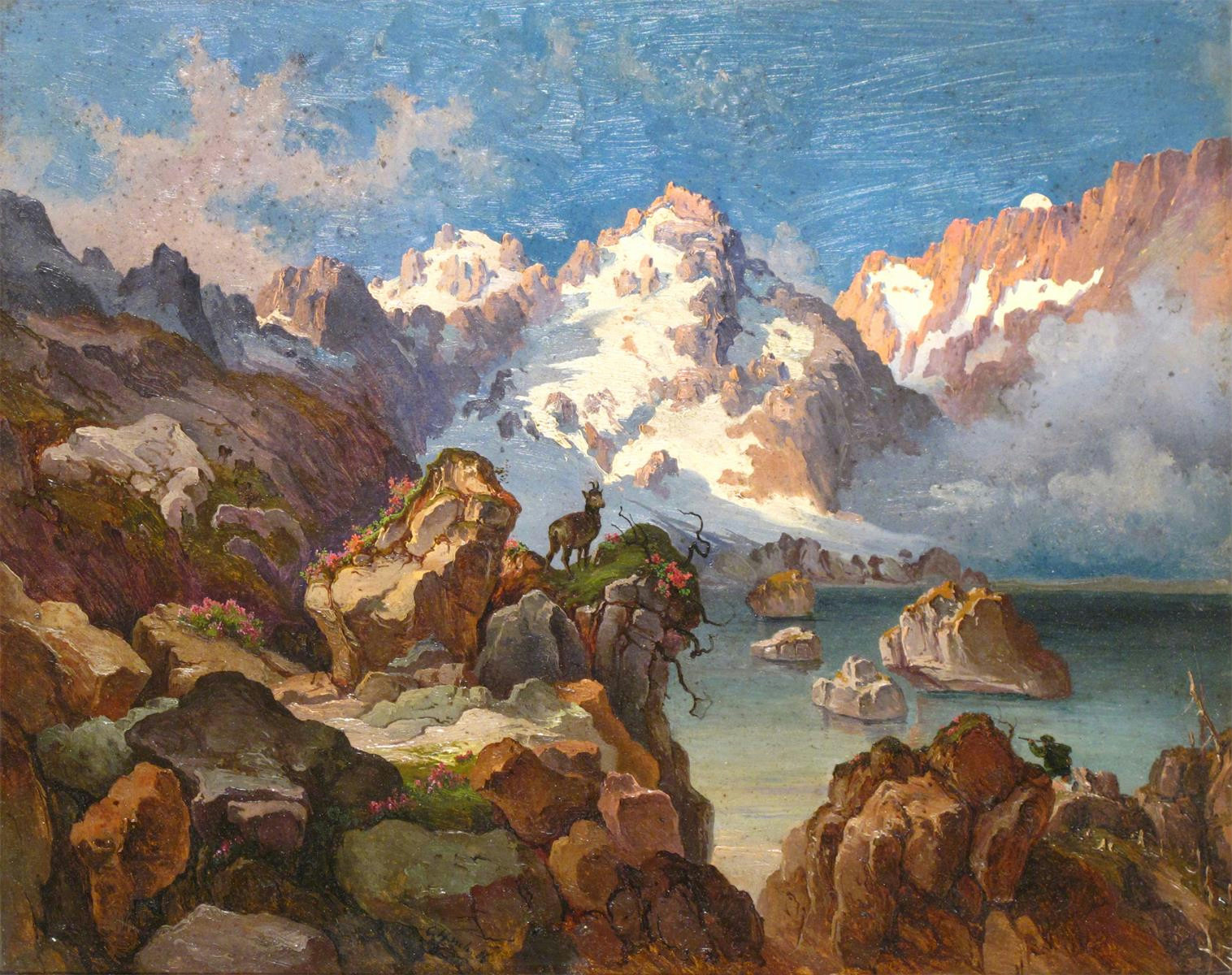 Carl Hasch (Austrian 1834-1897) A huntsman before a mountain lake Signed and dated 86 Oil on...