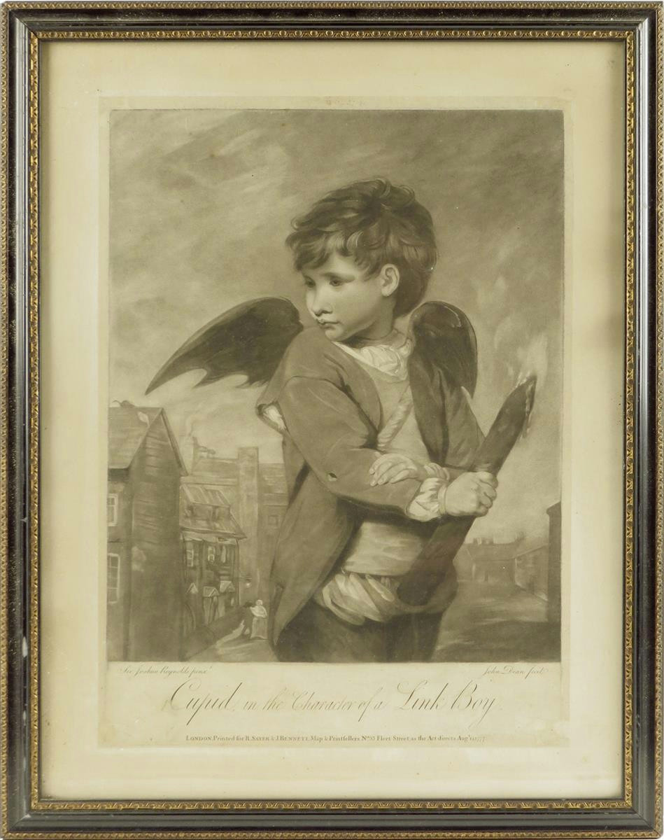 After Joshua Reynolds (1723-1792). Two mezzotints by John Dean, 'Mercury' and 'Cupid, in the Character of a Link Boy', 'LONDON, printed for R.SAYER & J.BENNETT, Map & Printsellers, No.53 Fleet Street, as the Act directs, Augt 15, 1777', 40 x 28.5cm, each in a glazed Hogarth frame. (2)