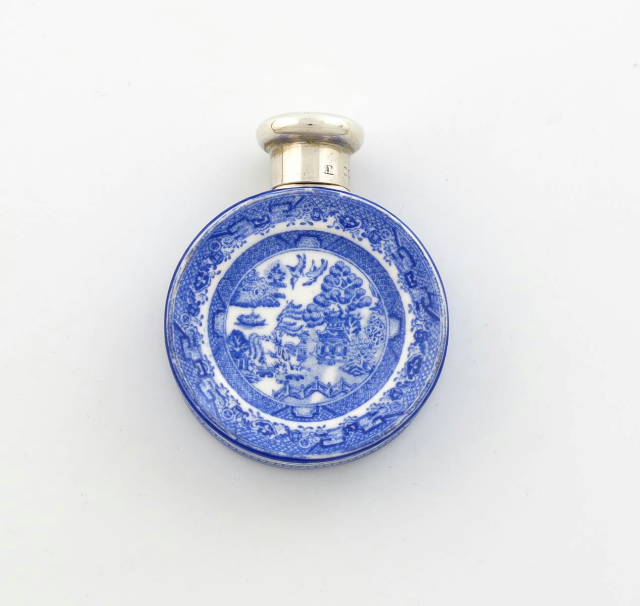circular form, with blue Willow pattern decoration, diameter 4.2cm.