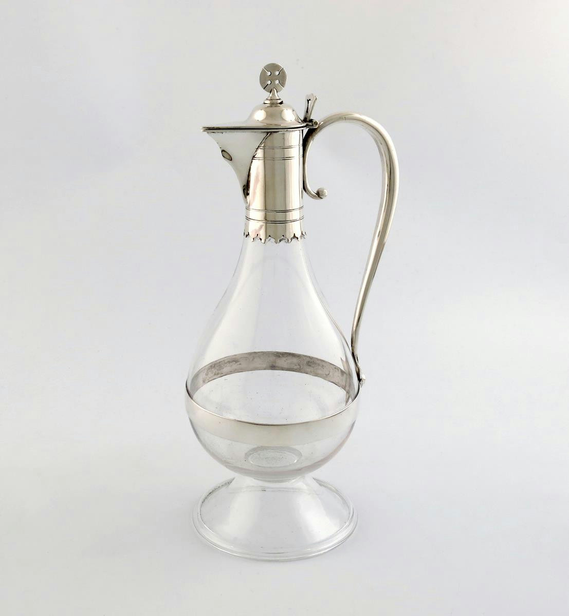 baluster form, the hinged cover with a pierced cross finial, scroll handle, on a raised circular foot, height 30.5cm.