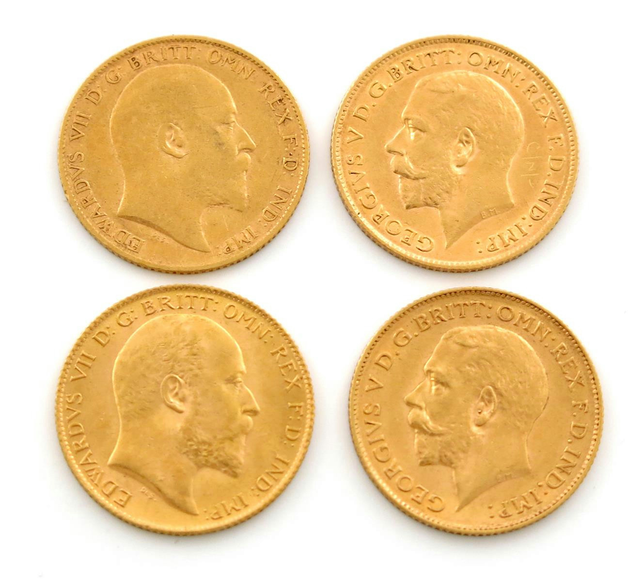 Edward VII and George V, gold Half-Sovereigns (4), 1908, 1909, 1912 (2). First fine others very fine. (4)