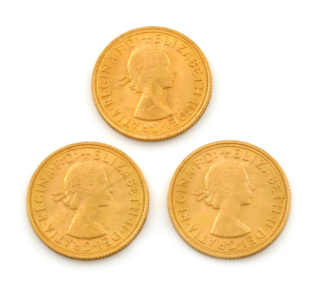 Elizabeth II, gold Sovereigns (3), 1958 (2), 1962. Extremely fine. (3)