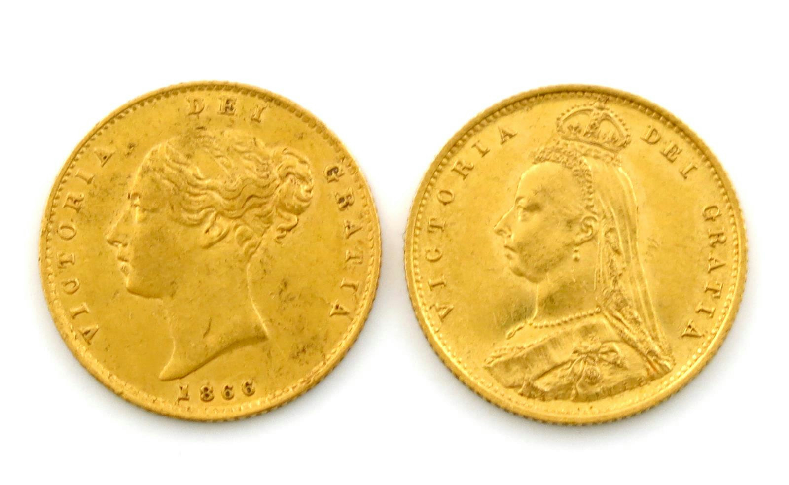 Victoria, Half-Sovereigns, 1866, die no. 16, young head, shield reverse; 1887, Jubilee head. Very fine and extremely fine. (2)