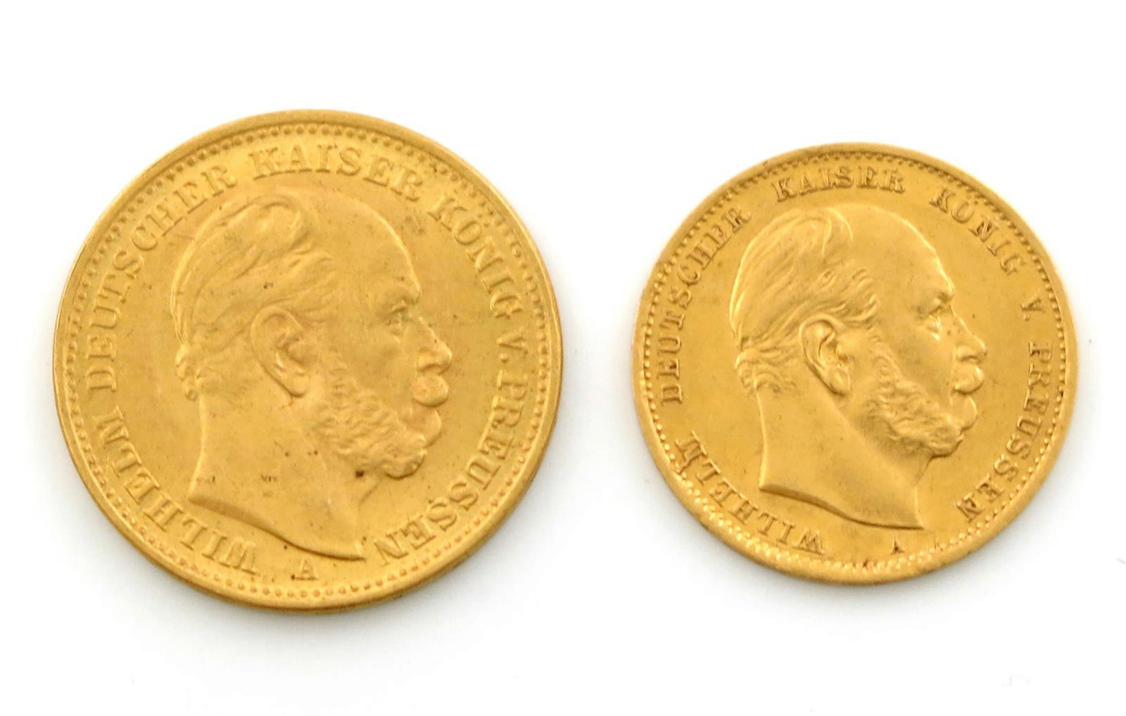 Germany, Empire, Prussia, Wilhelm I, 20-Marks, 1886 A, 10-Marks, 1875 A (F 3816, 3822). Good very fine. (2)