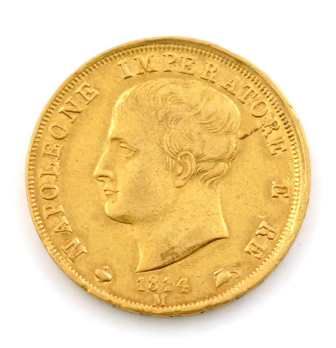 Italy, Kingdom, Napoleon, 40-Lire, 1814 M, head left, rev., crowned arms (F 5). Very fine.