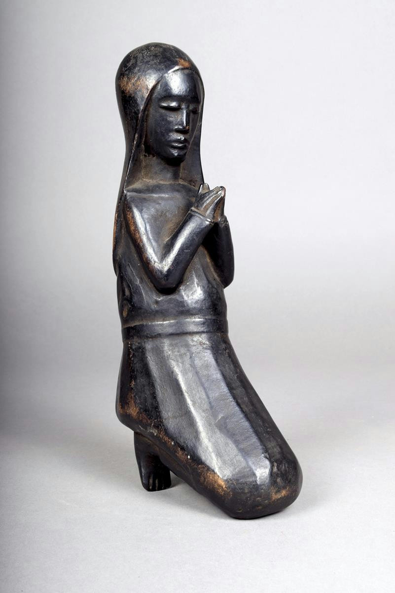 A Mozambique kneeling Madonna, ebonised wood, 24.5cm high.