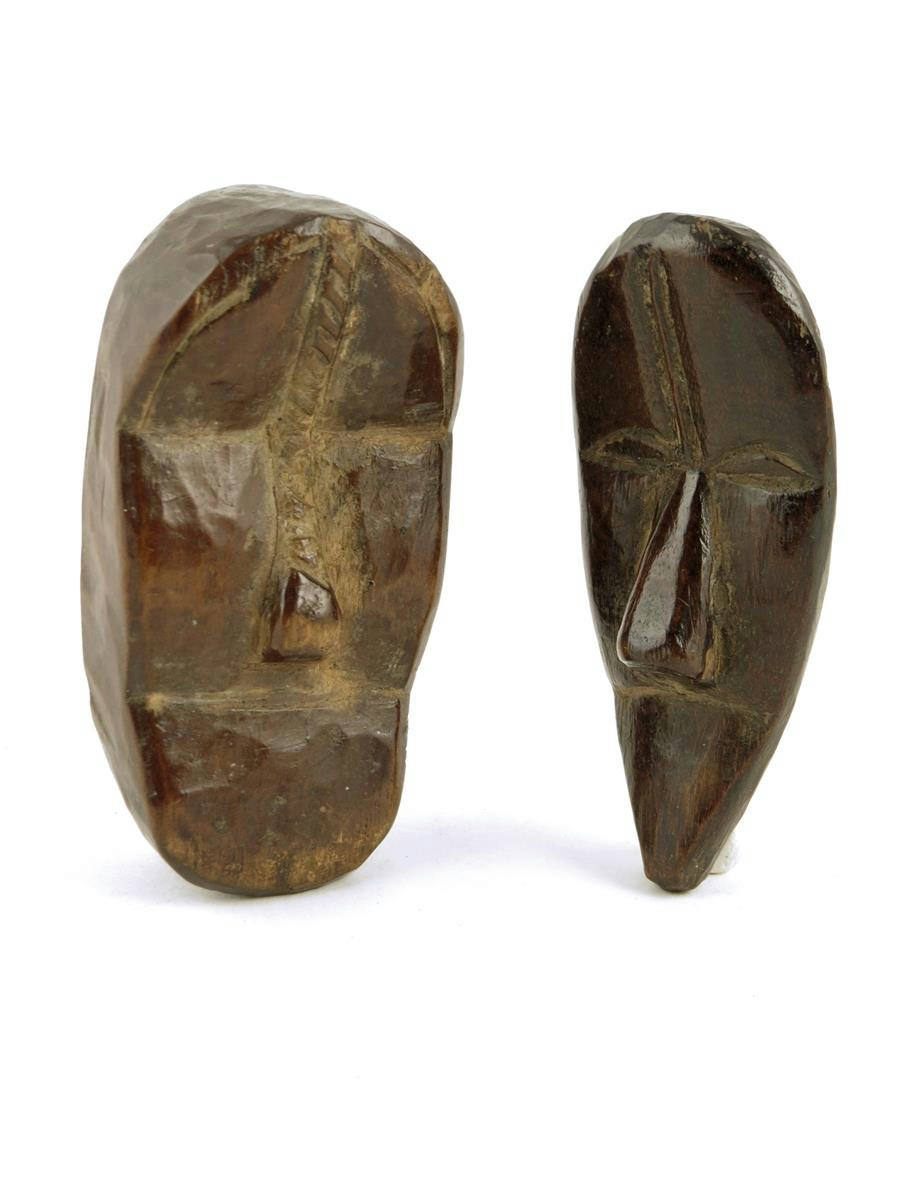 Two Dan passport masks, Ivory Coast, 7.6cm high. (2)