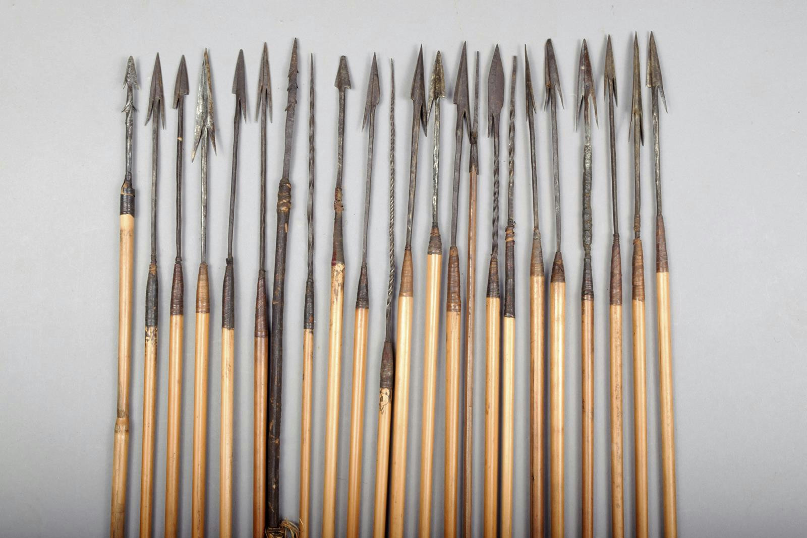 Twenty three metal tip arrows, with reed shafts and fibre bounds grooved ends. (23)