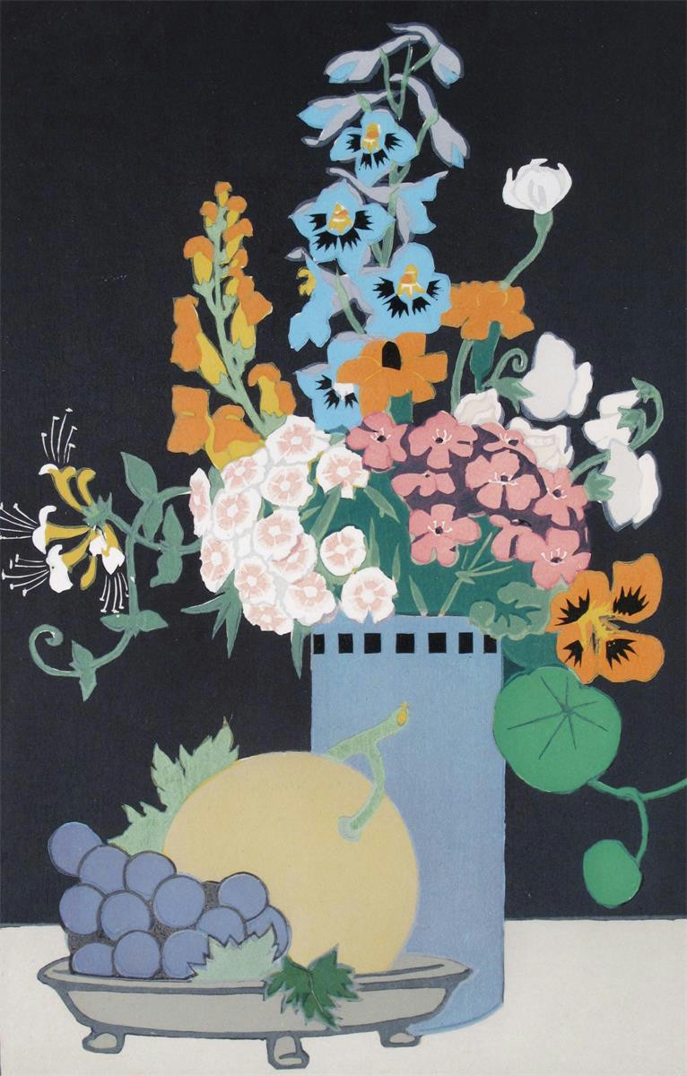 ‡John Hall Thorpe (1874-1947) Flowers and fruit Signed and titled Woodcut 40.5 x 26.5cm; 16 x 10½in