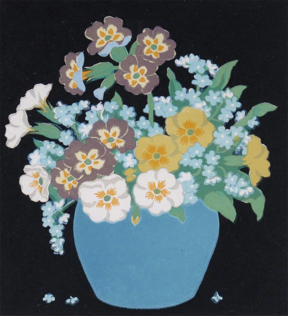 ‡John Hall Thorpe (1874-1947) Primroses and forget-me-nots Signed Woodcut 16.5 x 15cm; 6½ x 6in