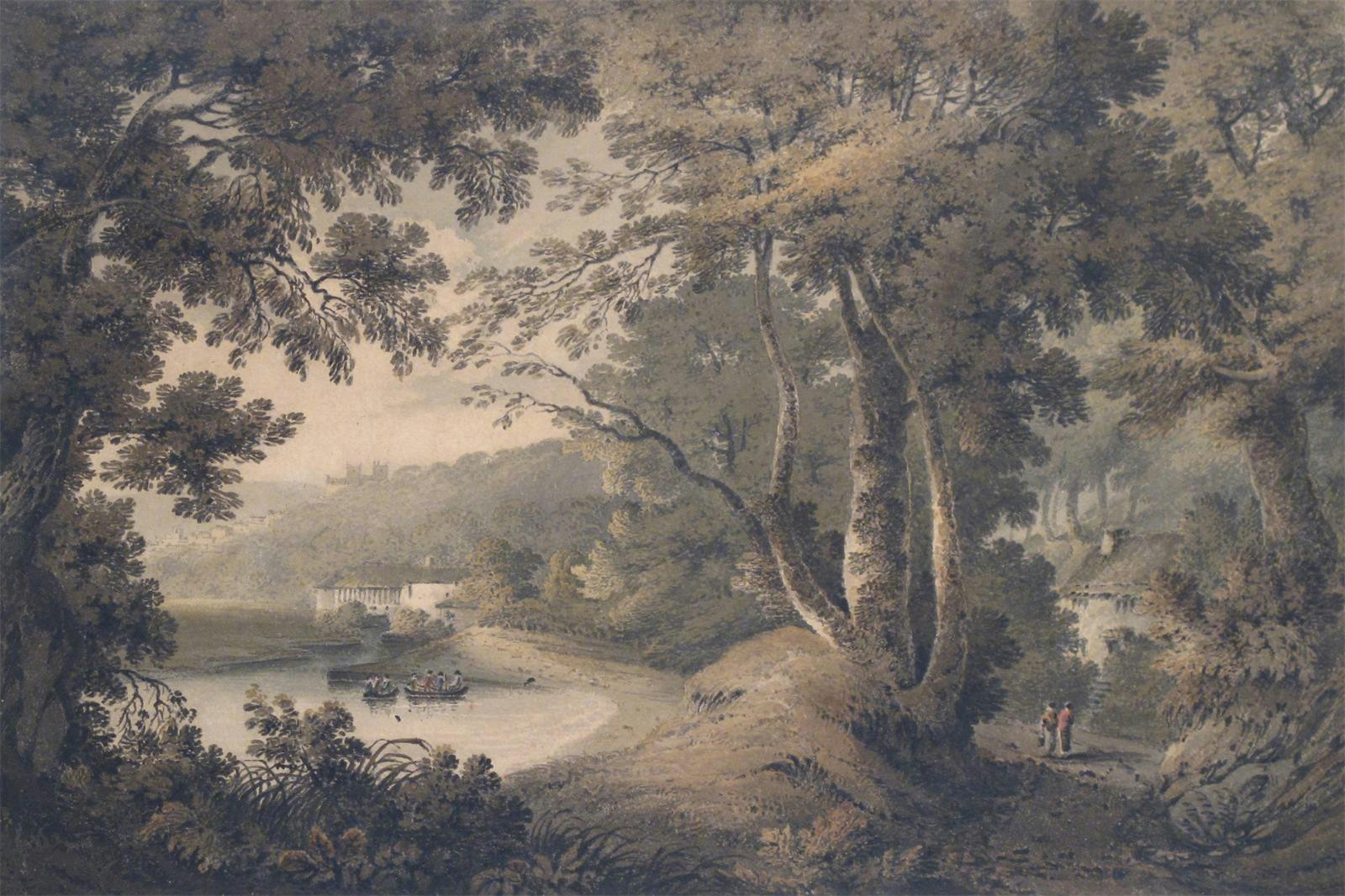 James Bourne (1773-1854) Figures in a wooded river landscape Thought to be signed and titled...