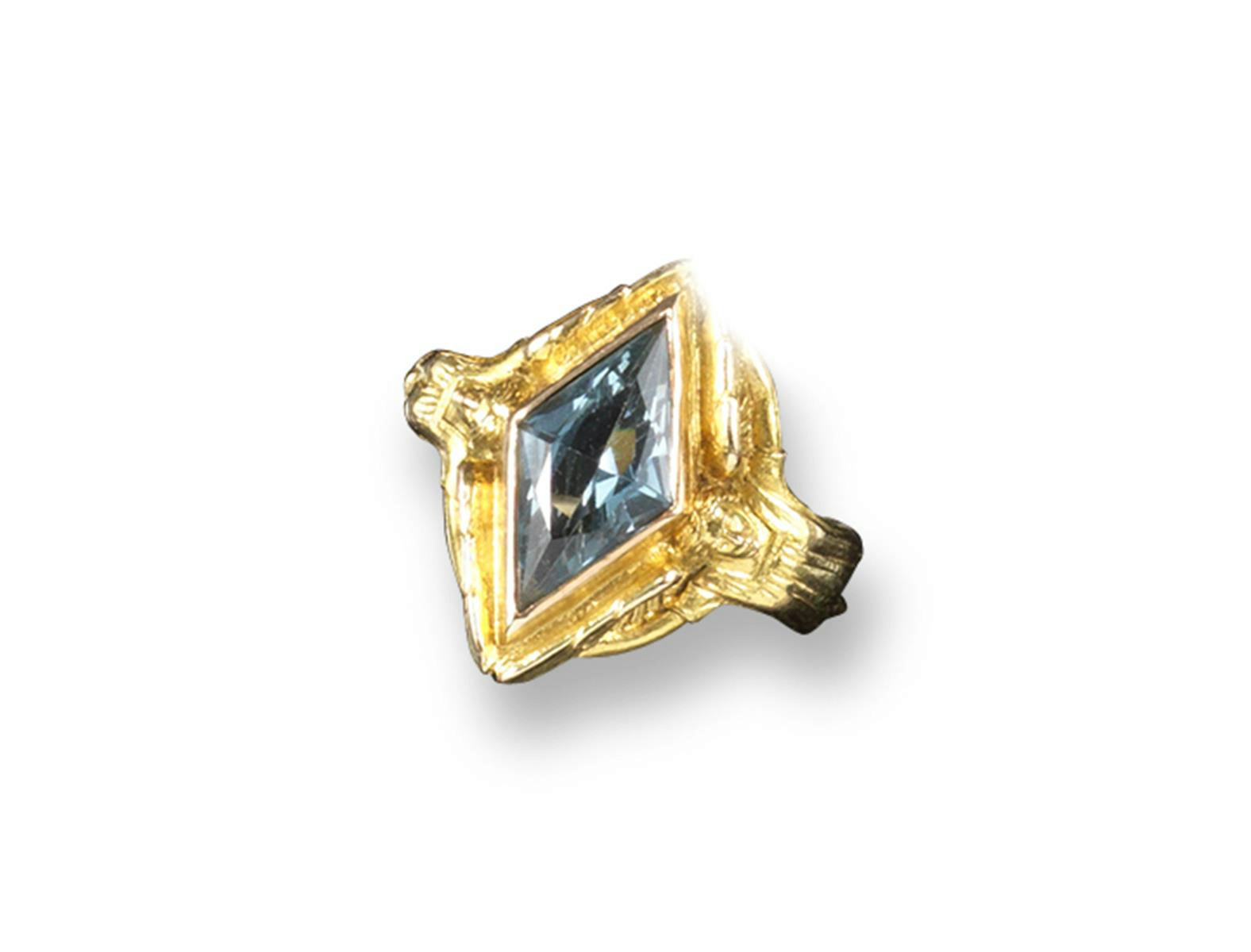 An Arts and Crafts Aquamarine and yellow gold ring