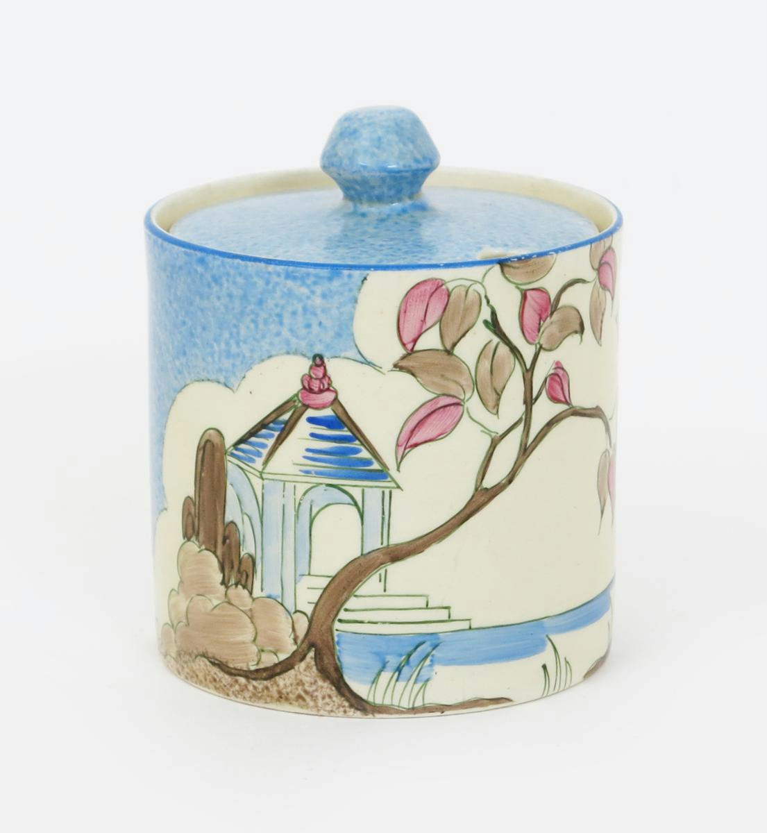'Blue Japan' a Clarice Cliff Bizarre Cylindrical preserve pot and cover
