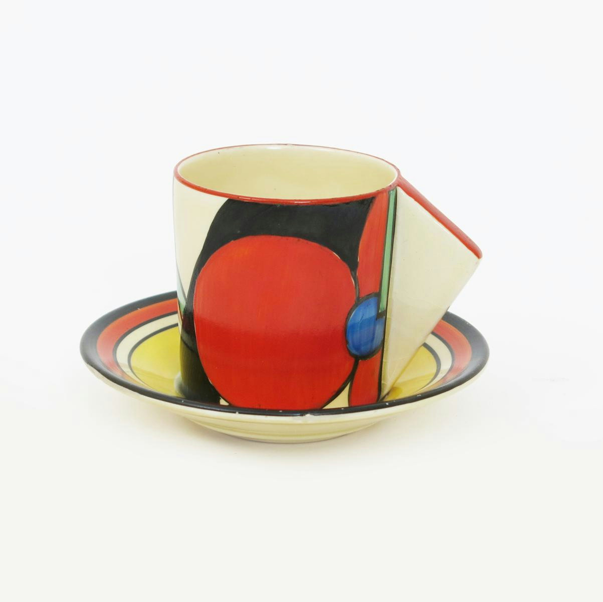 'Red Picasso Flower' a Clarice Cliff Fantasque Bizarre Conical coffee can and saucer