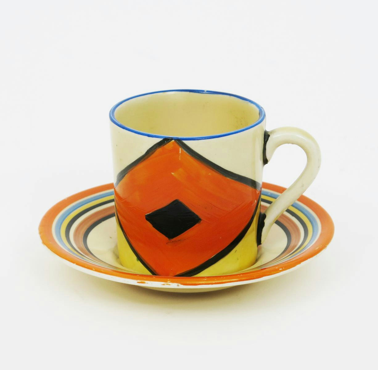 'Diamonds' a Clarice Cliff Bizarre Tankard coffee can and saucer