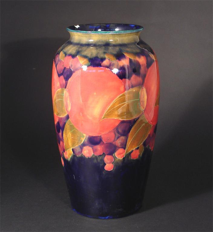 'Pomegranate' a Moorcroft Pottery vase painted in colours on a blue ground impressed marks