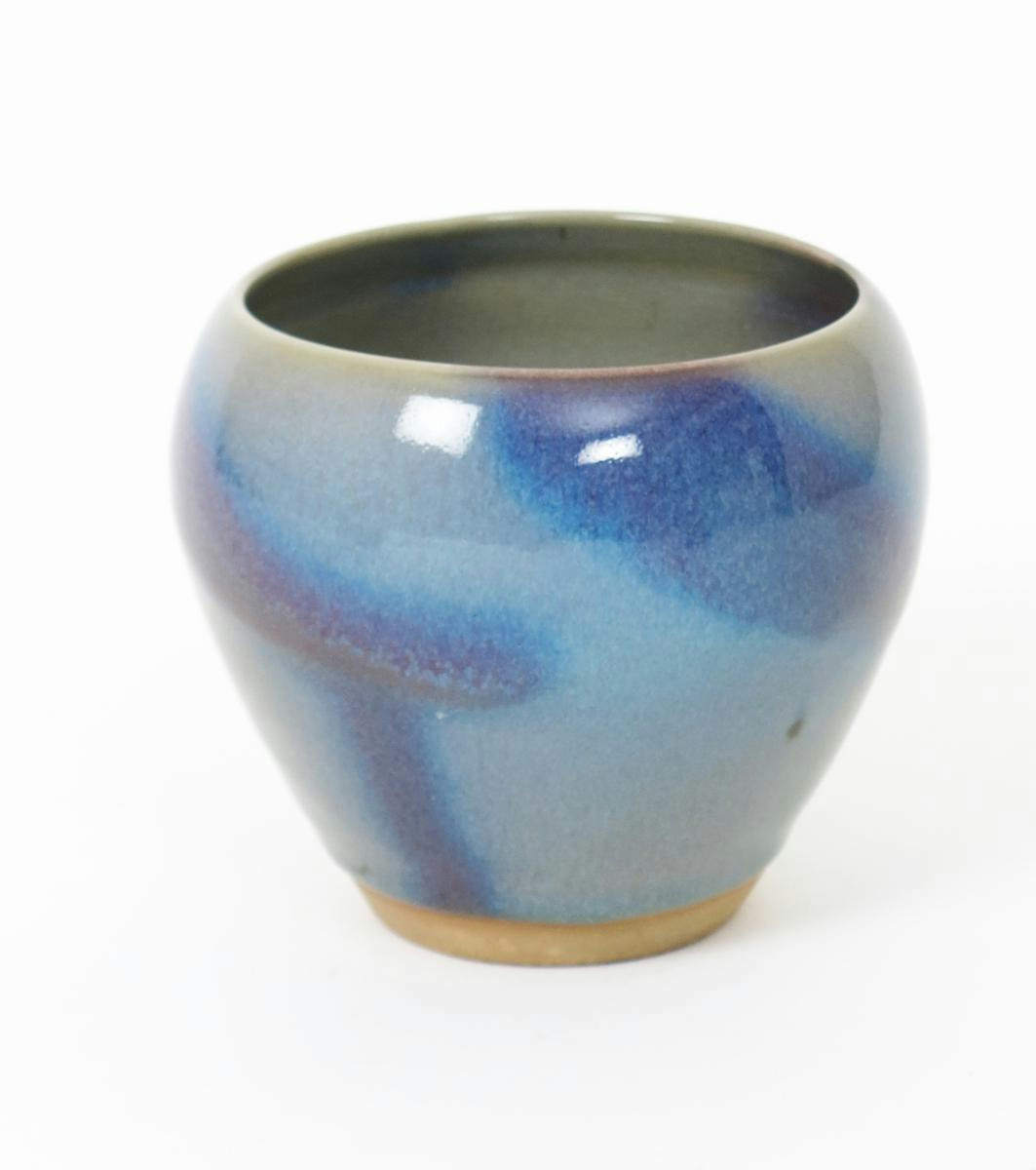 a stoneware vase, covered to the foot in a Chun glaze incised C Vyse Chelsea 12cm. high