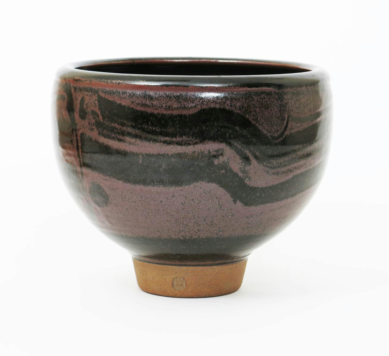 a Wobage Farm stoneware vase, flaring form, covered to the foot with a trailed tenmoku glaze to the foot, impressed seal mark, 26cm. high
