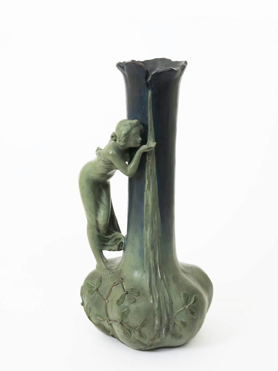 A large Art Nouveau terracotta figural vase from a model by Artistide de Ramieri
