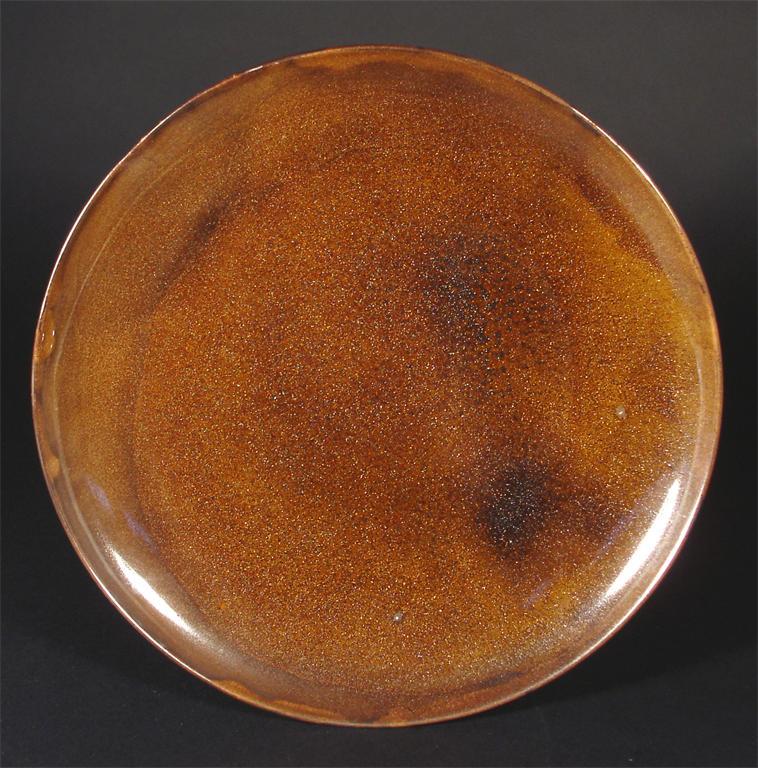 An early Pilkington's Lancastrian wall plate circa 1903-1904, covered in an aventurine glaze printed bee mark 25cm. diam. Provenance The Bill Coles Collection