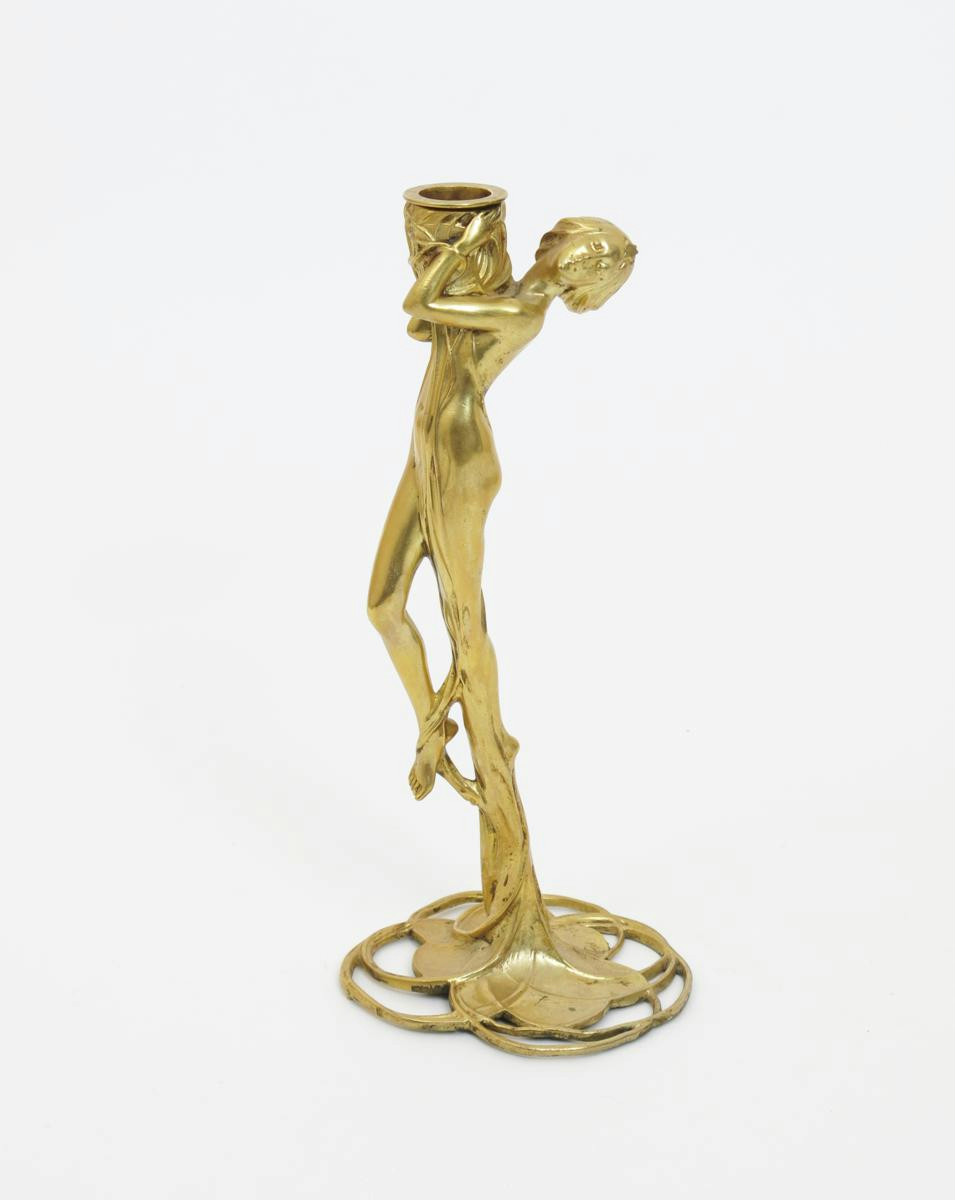 A gilt bronze candlestick cast from a model by Auguste Rubin