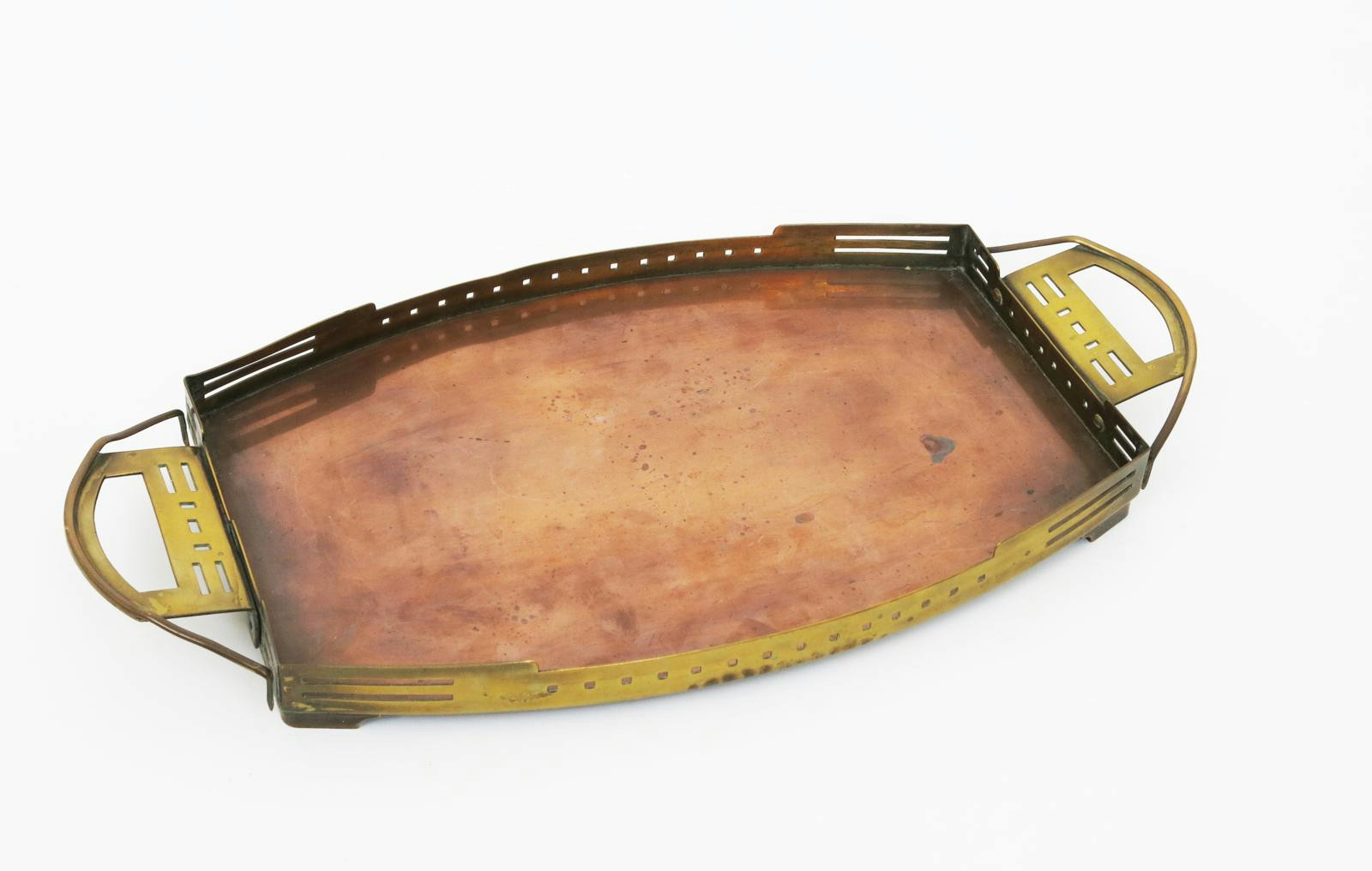 A Secessionist copper and brass tray designed by Gustave Serrurier-Bovy