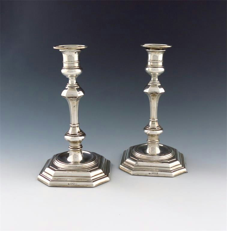 A pair of Edwardian silver candlesticks