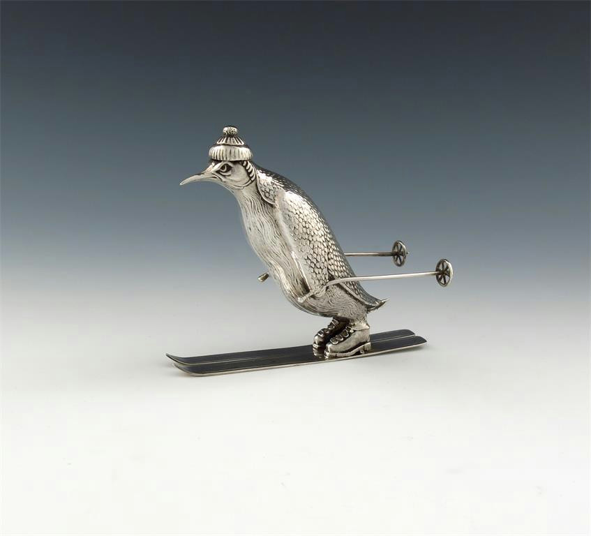 A modern Spanish novelty silver penguin on skis