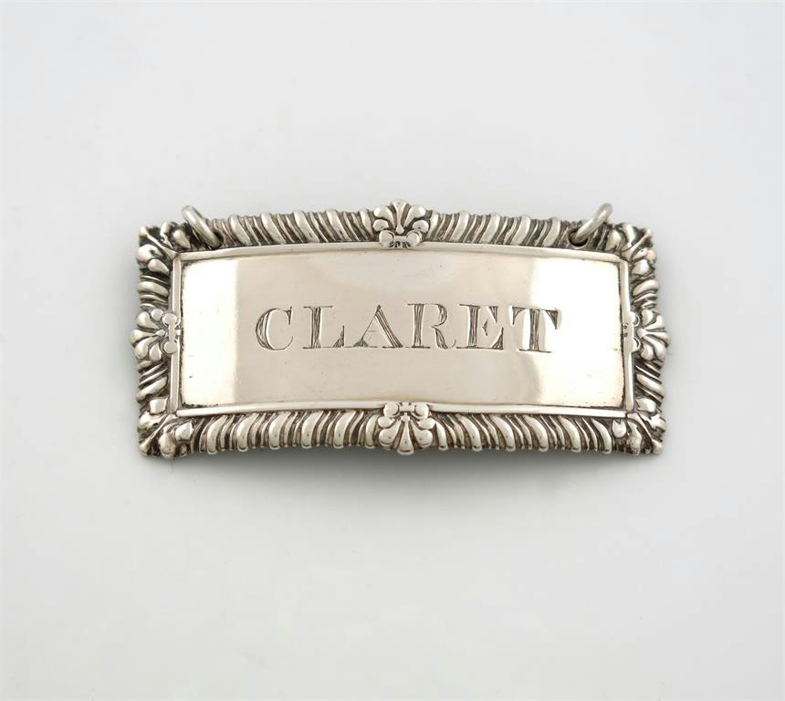 rectangular form, gadroon and foliate border, incised 'CLARET', length 6cm, approx. weight 0.7oz.