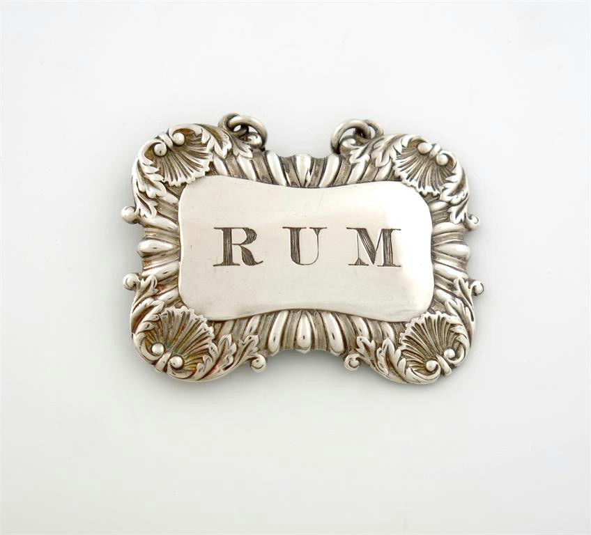 shaped rectangular form, gadroon and shell border, incised 'RUM', length 5.2cm, approx. weight 0.4oz.