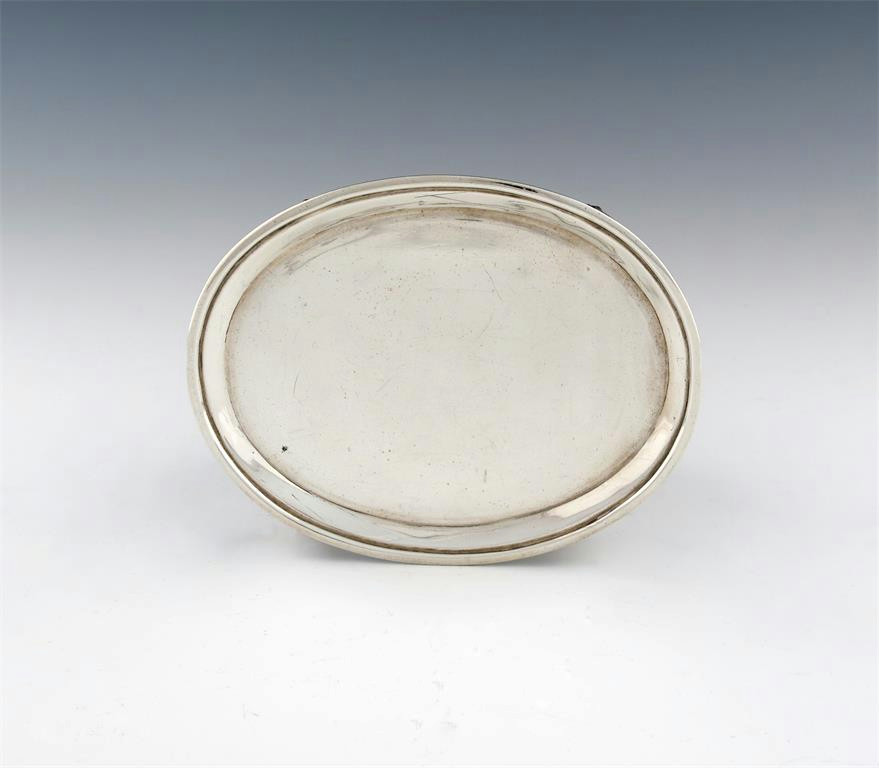 oval form, on four stylised claw and ball feet with engraved decoration, length 14.4cm, approx. weight 4.2oz.