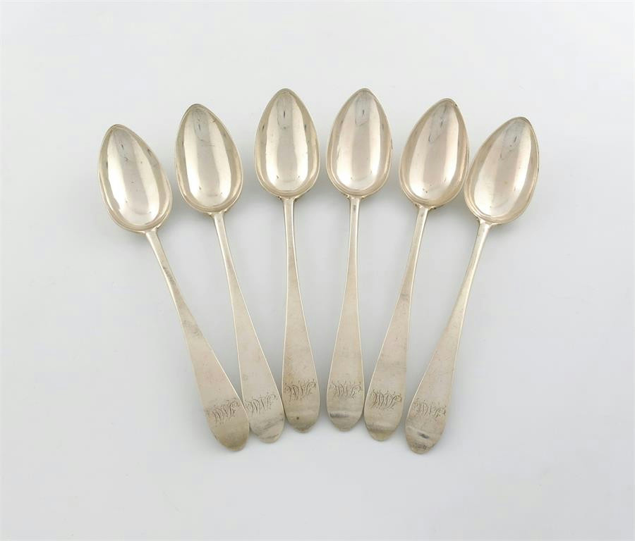 A set of six early 19th century Scottish provincial silver Celtic Point pattern tablespoons