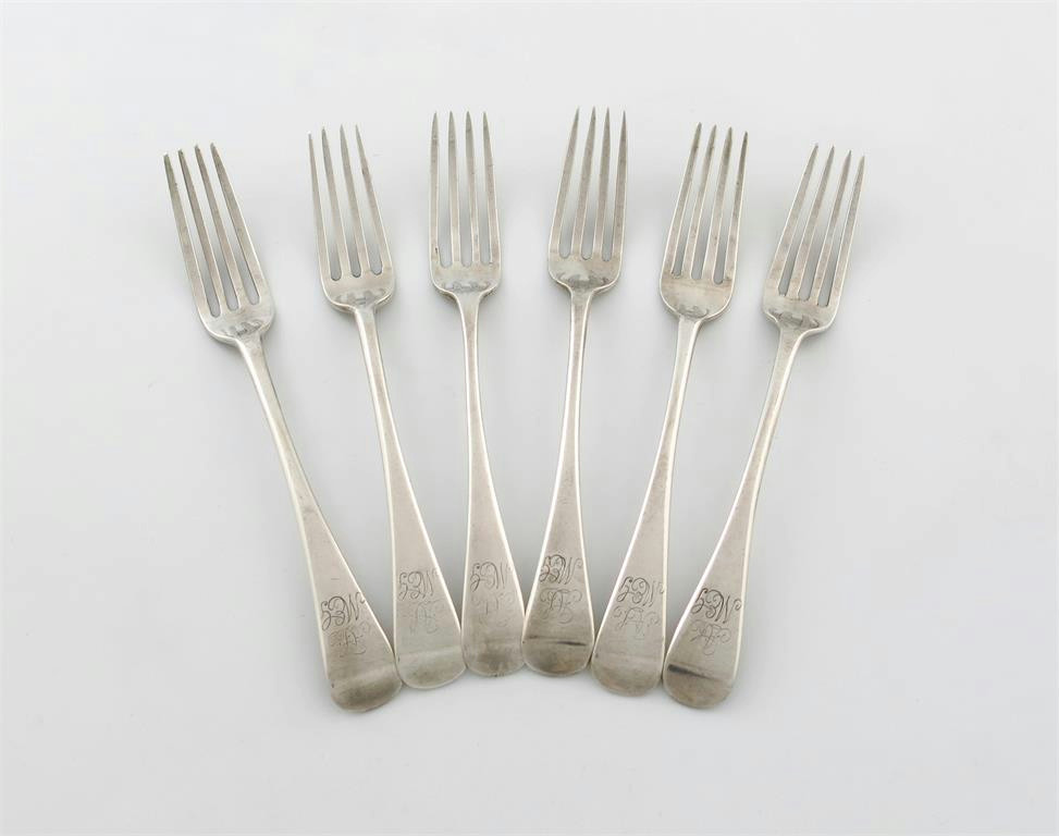 A set of six George III Scottish provincial silver Old English pattern table forks