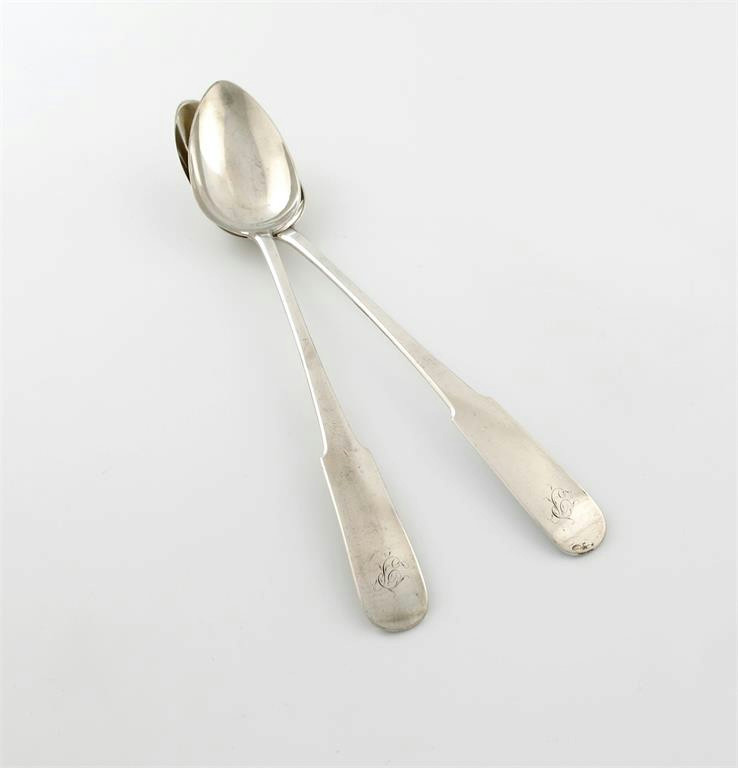A pair of George III Scottish silver Oar pattern basting spoons,
