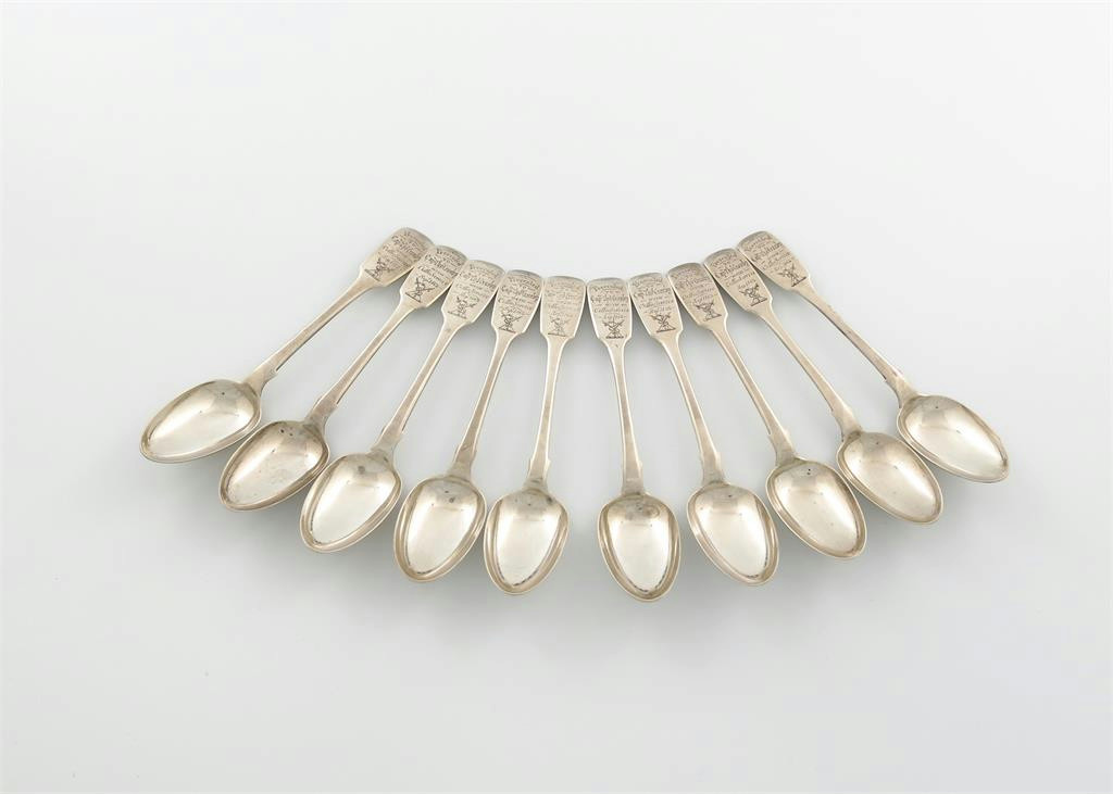 A set of ten Victorian Irish silver Fiddle pattern teaspoons