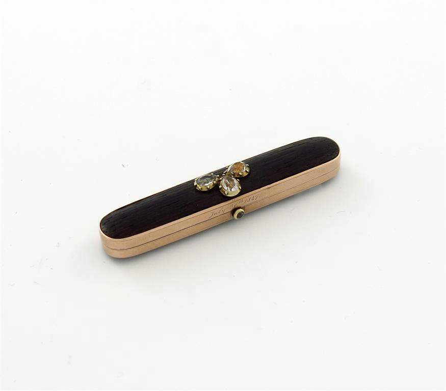An early 19th century gold mounted bog oak toothpick case